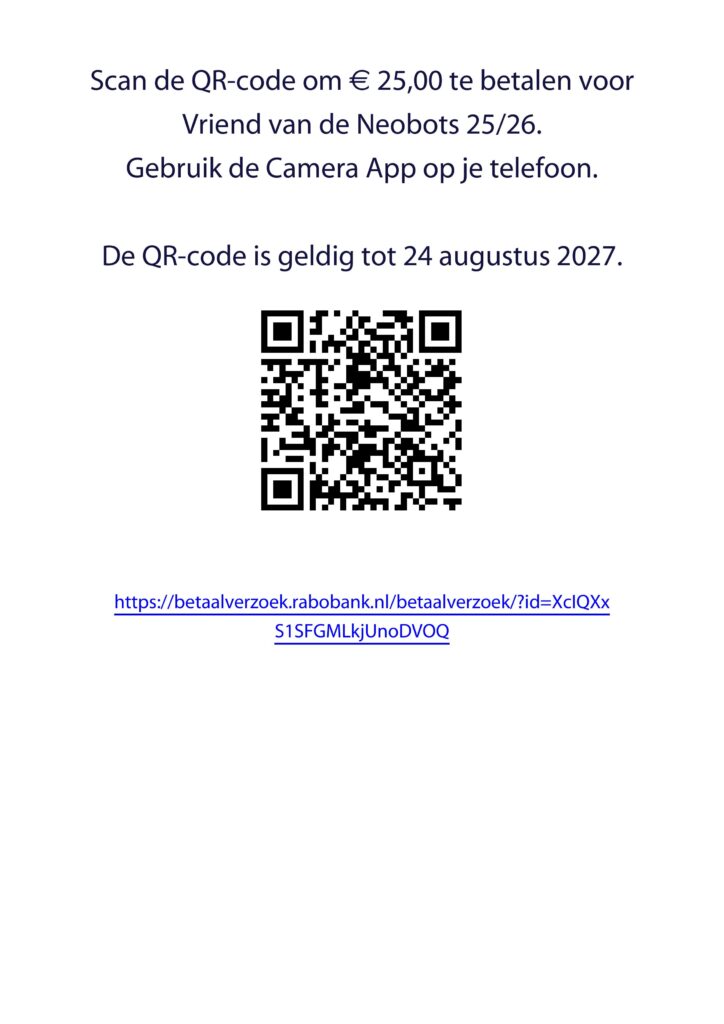 Word Vriend van Stichting Neobots voor maar €25,- per jaar!